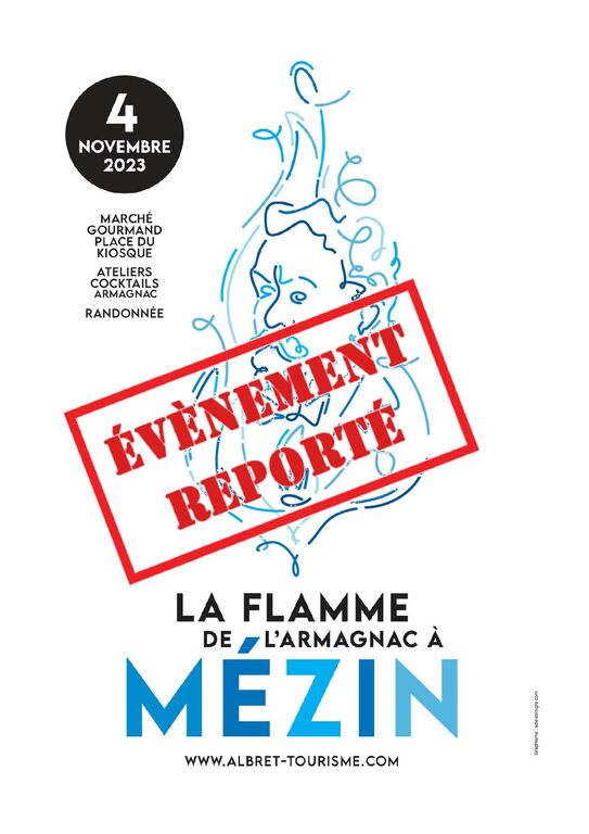 Suite aux prévisions météorologiques, la Flamme de l’Armagnac du samedi 4 novembre 2023 à Mézin est reportée au dimanche 3 décembre et cumulée au Marché de Noël de la ville de Mézin.Nous maintenons le programme, rando, marché de producteurs, mixologie.