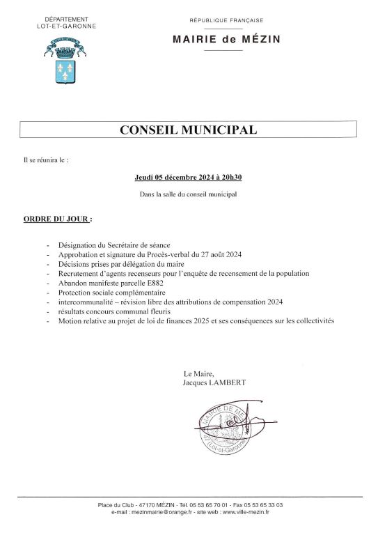 Conseil Municipal - Décembre 2024